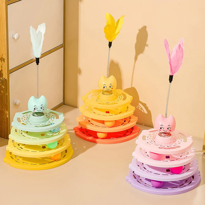 یک بازی کلاسیک و سرگرم کننده که شامل چندین توپ در طبقات مختلف است. گربه می تواند ساعت ها توپ ها را دنبال کند و انرژی خود را تخلیه نماید. وجود پر تزئینی در بالای برج، جذابیت آن را دوچندان می کند.