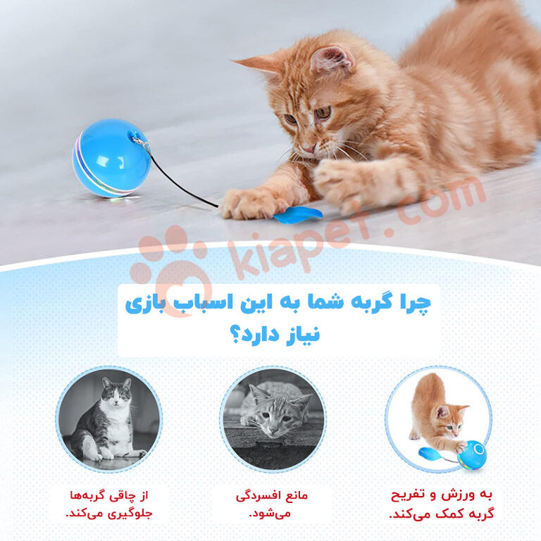 این اسباب بازی با چراغ LED و حرکت چرخشی خود، گربه ها را ساعت ها سرگرم می کند. توپ رباتیک با حرکات غیرقابل پیش بینی، حس شکارگری گربه را فعال کرده و بهترین وسیله برای تخلیه انرژی است.
