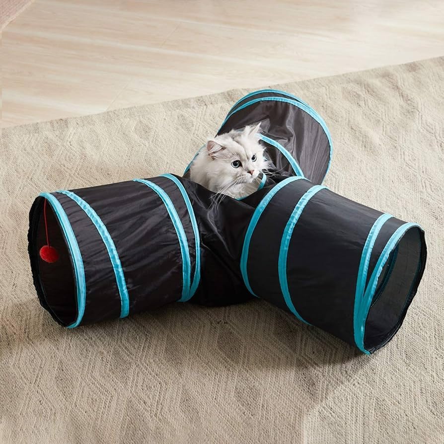 یک گزینه عالی برای گربه های پرجنب وجوش! این تونل با سه ورودی و خروجی، فضای بازی هیجان انگیزی برای گربه ها ایجاد می کند. توپ آویز داخل تونل هم لذت بازی را بیشتر می کند.
