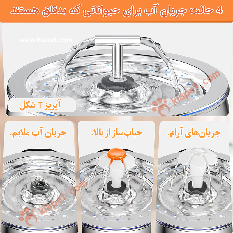 طراحی دوگانه آبریز: این دستگاه دارای دو سری مختلف برای خروجی آب است: یک سری به شکل گل و یک سری آبریز مستقیم. این تنوع به شما امکان می دهد تا سری مورد علاقه پت خود را انتخاب کنید.