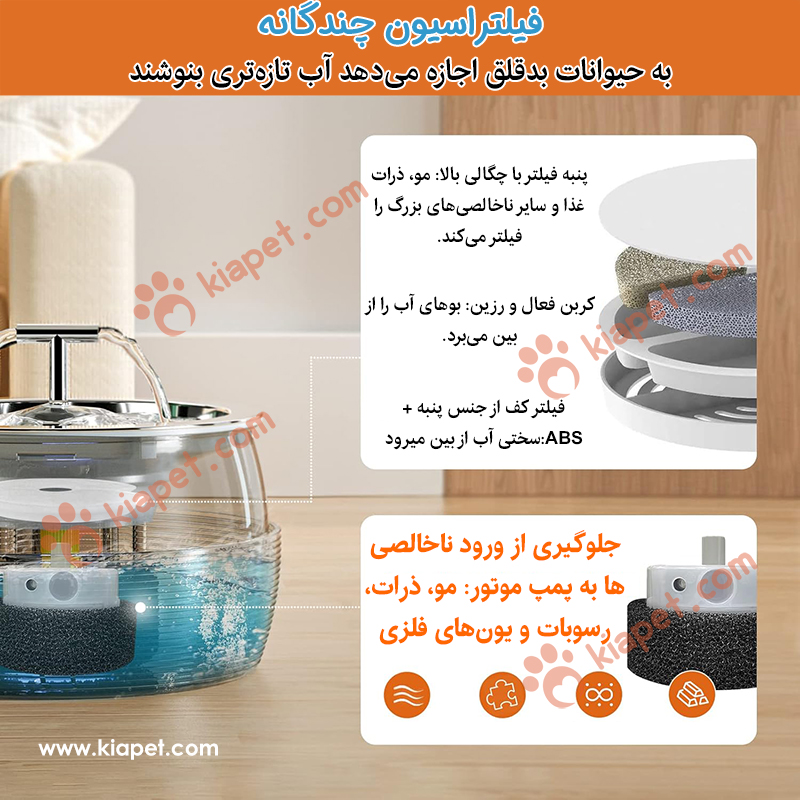 عملکرد فوق العاده بی صدا: پمپ دستگاه بسیار کم صدا طراحی شده است. تنها صدایی که می شنوید، صدای آرام و دلنشین جریان آب است که به آرامش محیط کمک می کند.