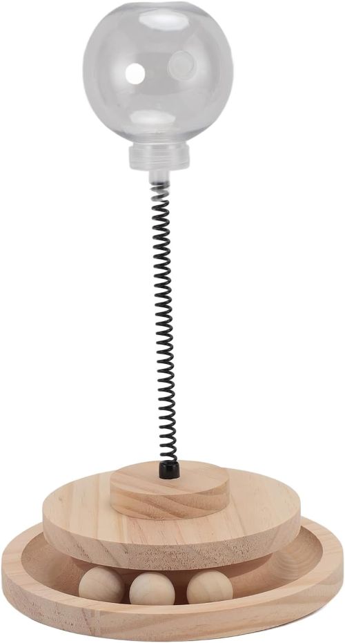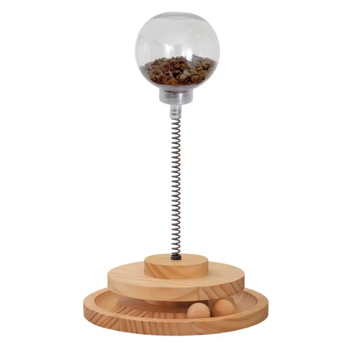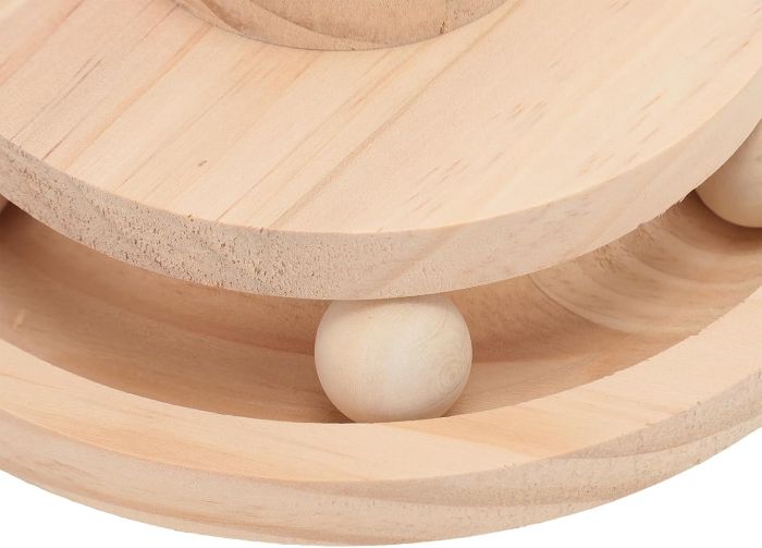 توپ های چوبی همراه با توپ کت نیپ (گیاه سنبل الطیب مخصوص گربه ها) داخل مسیر دو طبقه می چرخند و حس شکار را در گربه زنده نگه می دارند. این طراحی باعث می شود گربه ساعت ها سرگرم شود بدون اینکه دچار استرس یا خستگی شود.