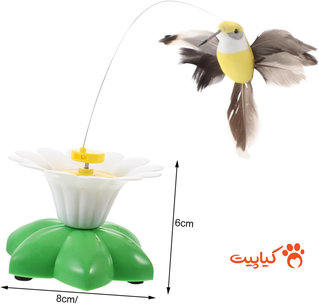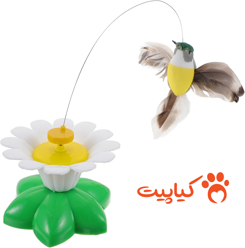 اسباب بازی گربه مدل پرنده چرخان با طراحی خلاقانه خود، شامل یک پایه به شکل گل است که پرندهای مصنوعی به آن متصل شده و به دور گل میچرخد. این اسباببازی با یک باتری نیمقلمی کار میکند و میتواند برای مدت طولانی، گربه عزیز شما را سرگرم کند. پرنده این اسباببازی با طراحی کاملاً طبیعی شبیه به مرغ مگسخوار ساخته شده است که حس واقعی شکار را در گربه شما بیدار میکند.