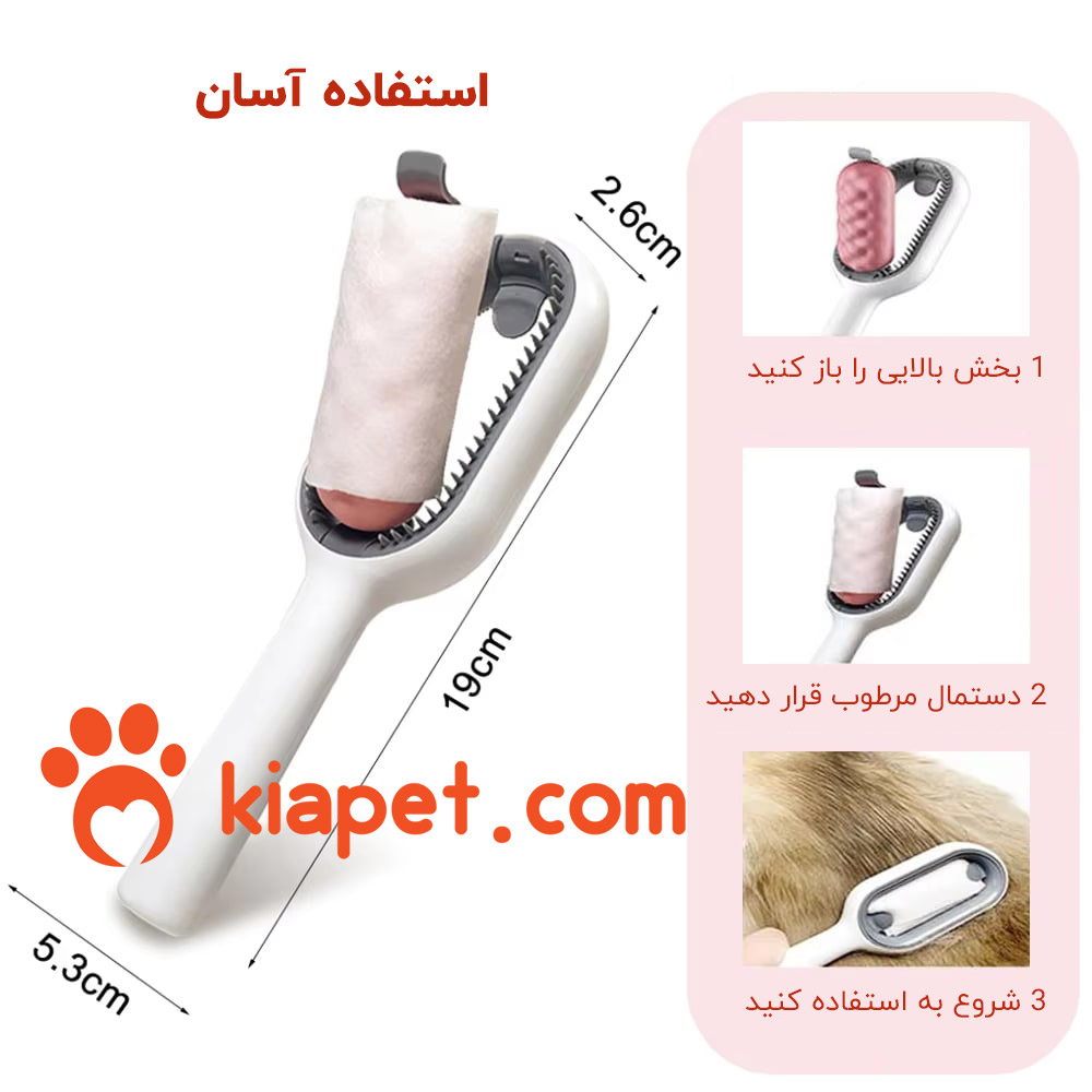 برس مرطوب مخصوص سگ و گربه، برس دو کاره برای حذف موهای حیوانات برای تمیزکاری و آرایش و نیز از بین بردن موهای زبر.