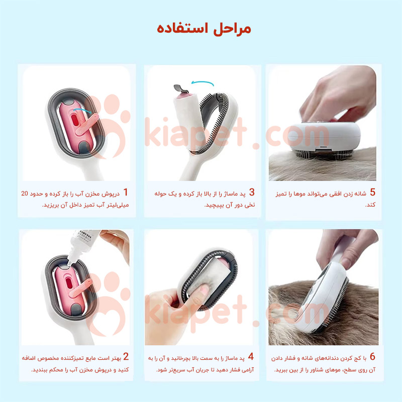 طراحی منحصر به فرد شانه سوزنی: برس مو جمع کن با مخزن آب (برس مرطوب) ما دارای طراحی شانه سوزنی دو طرف با دندان های متعدد است که این طراحی به طور موثر ، پوست حیوان را تمیز کرده و بدون ایجاد خراش یا آسیب به پوست، مو ها را جمع میکند.