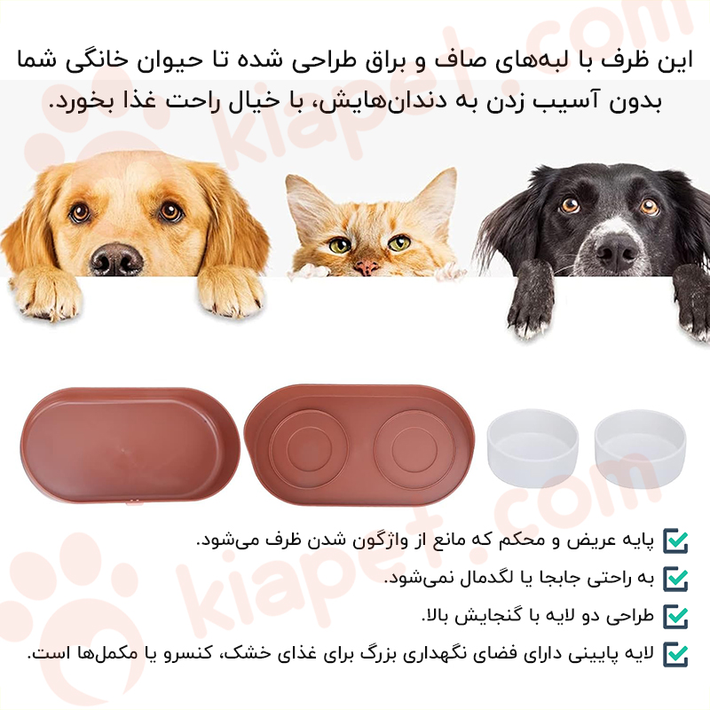 • لبه های ظرف به صورت گرد و صاف طراحی شده تا پت شما با خیالی آسوده و بدون آسیب به دندان هایش غذا بخورد.