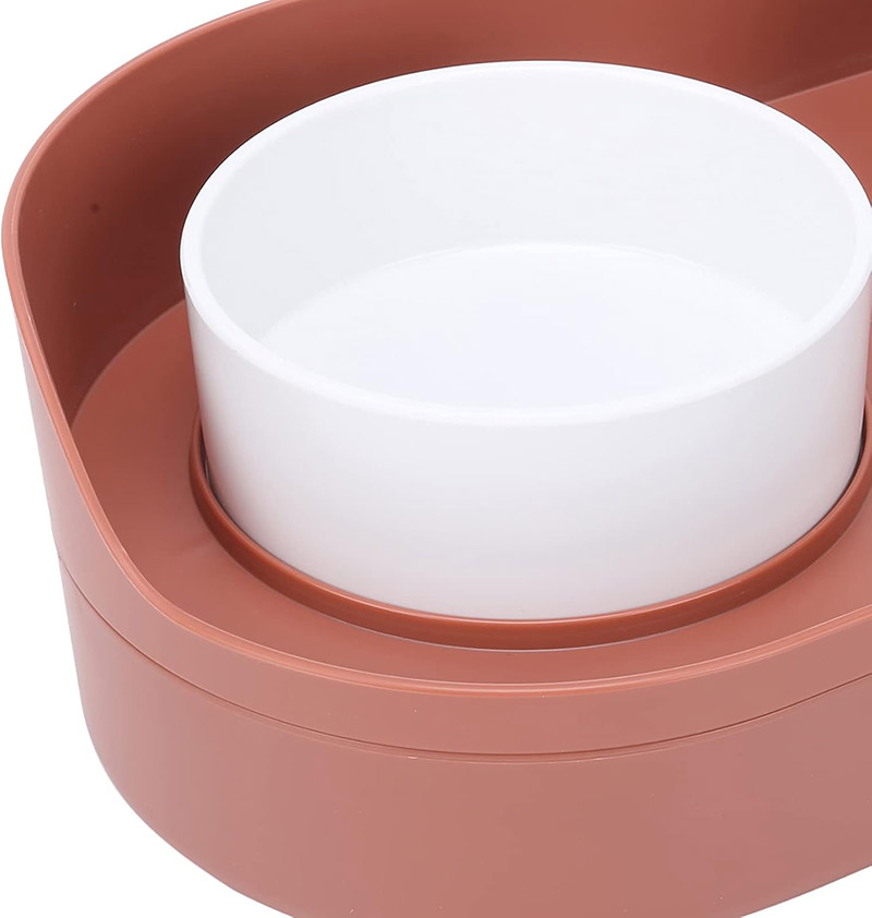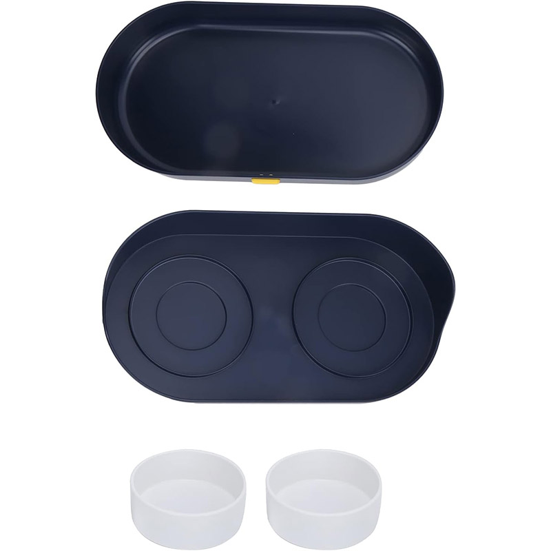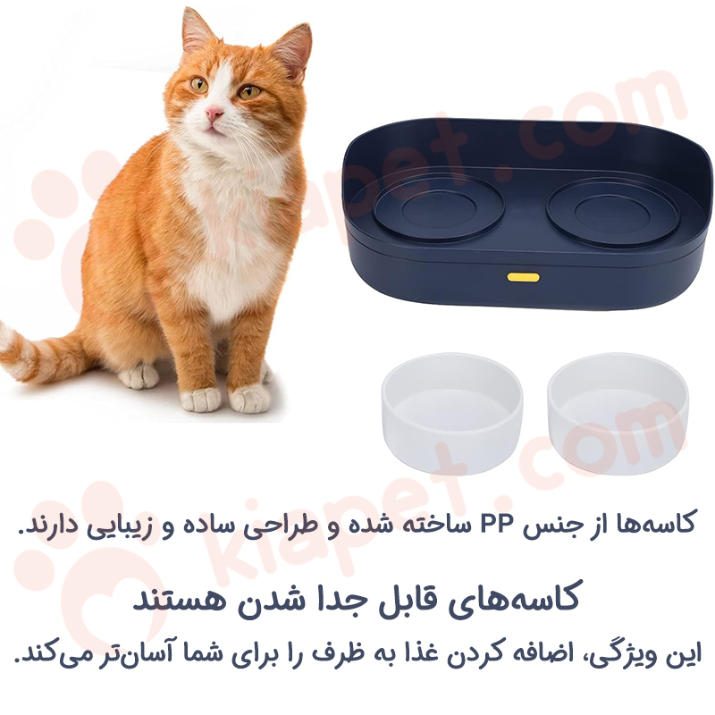• این ظرف از دو لایه مجزا تشکیل شده است. لایه بالایی شامل دو کاسه جداگانه برای آب و غذا است.