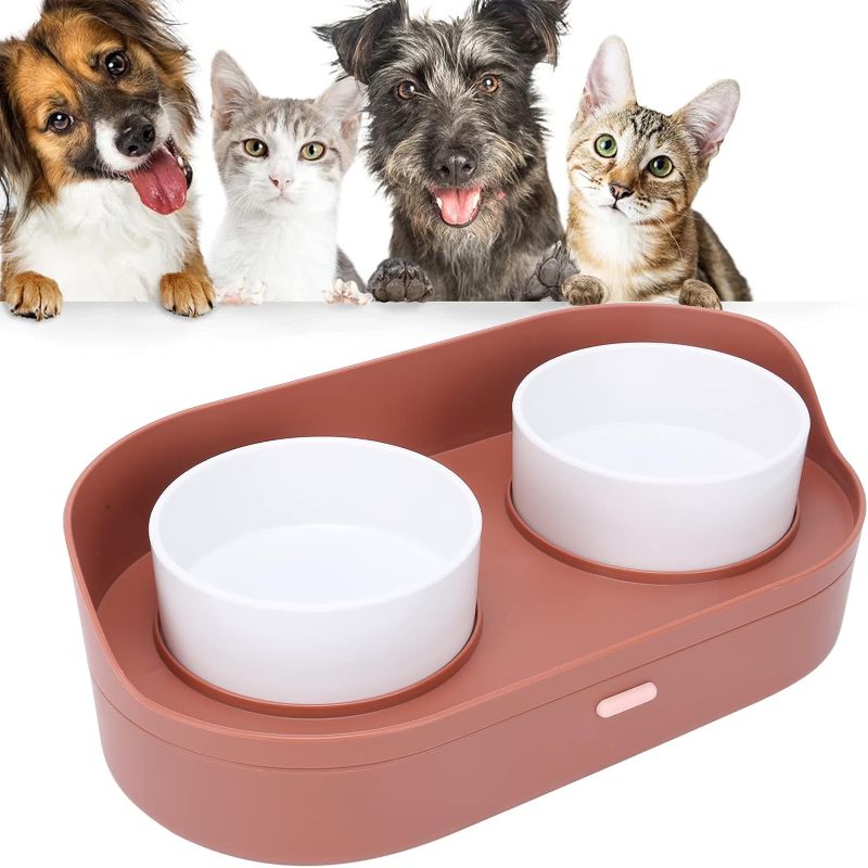 ظرف آب و غذای سگ و گربه دوقلو با پایه و مخزن دار