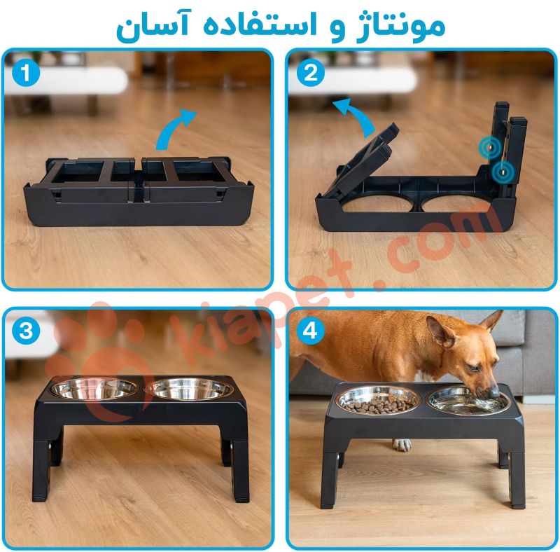 این ظرف پایه دار با قابلیت تنظیم ارتفاع، می تواند همراه با رشد سگ شما تغییر کند. می توانید ارتفاع آن را به 30 سانتی متر برای سگ های بزرگ، 26 سانتی متر برای سگ های متوسط و بزرگ، 22 سانتی متر برای سگ های متوسط و 8 سانتی متر برای سگ های کوچک تنظیم کنید. این ویژگی آن را به انتخابی ایده آل برای توله سگ ها تا سگ های مسن تبدیل می کند.