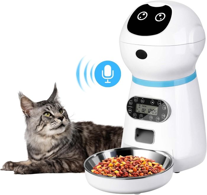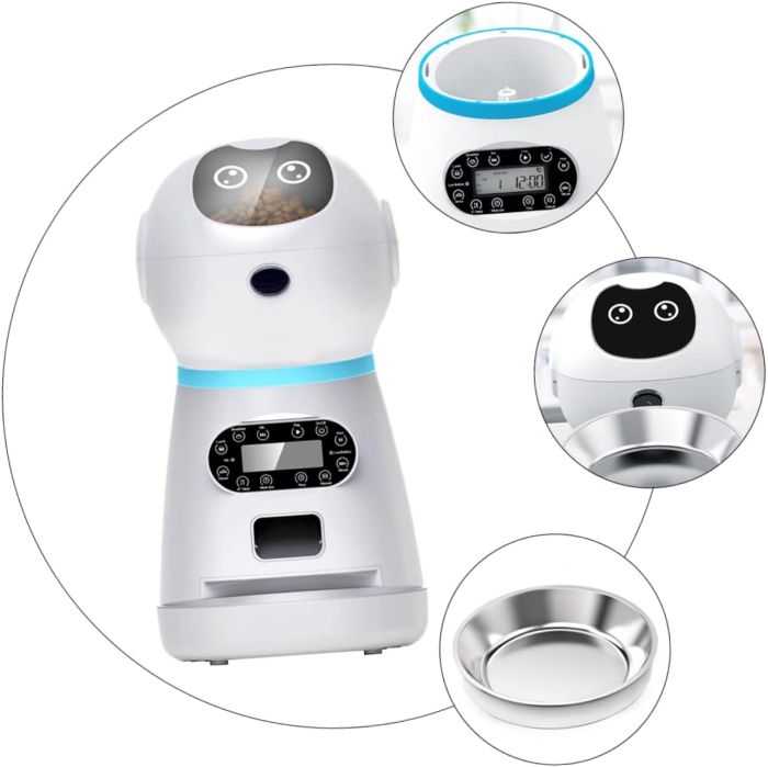 ثبت پیام صوتی اختصاصی: شما می توانید با فشار دادن دکمه ثبت، برای هر وعده غذایی یک پیام 10 ثانیه ای ضبط کنید تا حیوان شما با صدای شما به ظرف غذا جذب شود. مثال: «بچه جان بیا غذا بخور!» این ویژگی باعث ایجاد ارتباط مثبت و عادت غذایی سالم می شود.