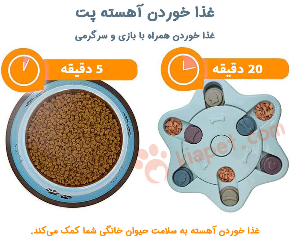 این ظرف غذای پازلی برای تمامی سگ ها (کوچک و متوسط) و گربه ها مناسب است.