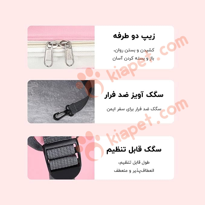• زیپ ها و دهانه های متعدد: چندین دهانه ورودی و خروجی، امکان دسترسی و تعامل آسان با حیوان خانگی شما را فراهم می کند.