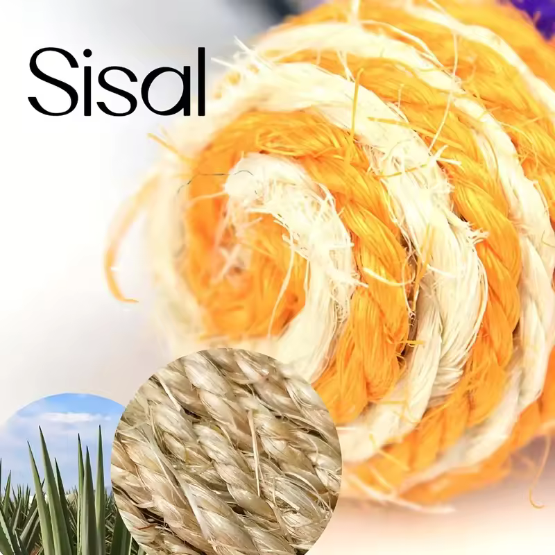 جنس این اسباب بازی از الیاف طبیعی سیسال ساخته شده است؛ سیسال نوعی الیاف گیاهی مقاوم و ایمن است که معمولاً در اسکرچرها و اسباب بازی های گربه استفاده می شود و به دلیل بافت زبر خود، برای چنگ زدن و جویدن کاملاً مناسب است. این ویژگی به کاهش استرس، جلوگیری از آسیب به وسایل خانه و حفظ سلامت پنجه ها کمک می کند.