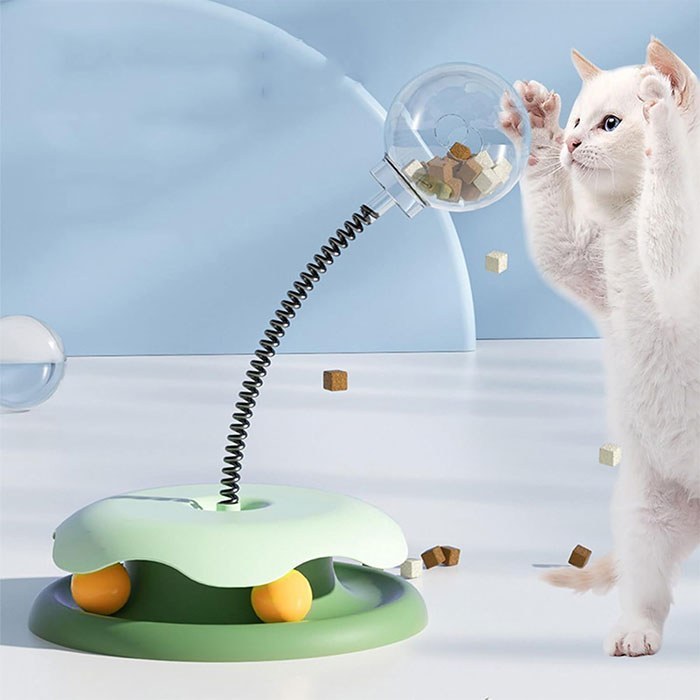 اسباب بازی تعاملی گربه توپ دار با مخزن تشویقی، یک انتخاب هوشمندانه برای سرگرمی، تحرک و تغذیه کنترل شده گربه هاست. این اسباب بازی با حرکت توپ، تشویقی یا غذای خشک را به صورت تدریجی آزاد می کند و غریزه بازی و شکار گربه را فعال نگه می دارد.