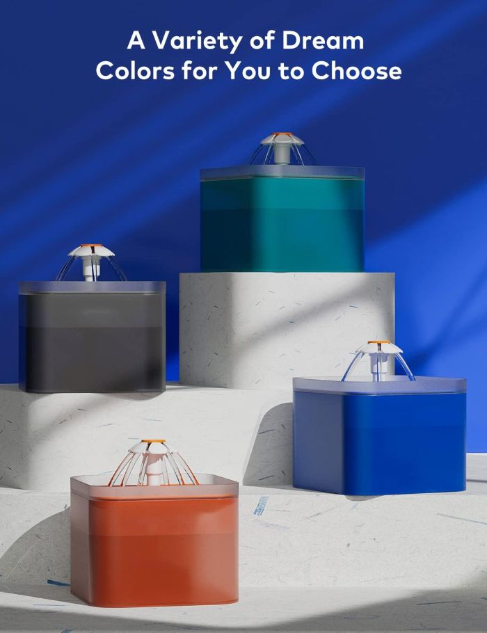 پمپ ارتقایافته این آبخوری با صدای بسیار کم (کمتر از ۳۰ دسی بل) و مصرف انرژی پایین، بدون ایجاد مزاحمت برای شما یا حیوان خانگی کار می کند. سه حالت مختلف جریان آب (آبشار گل، حبابی و فواره ملایم) تنوع جذابی ایجاد می کند و گربه ها و سگ ها را به نوشیدن آب بیشتر ترغیب می کند.