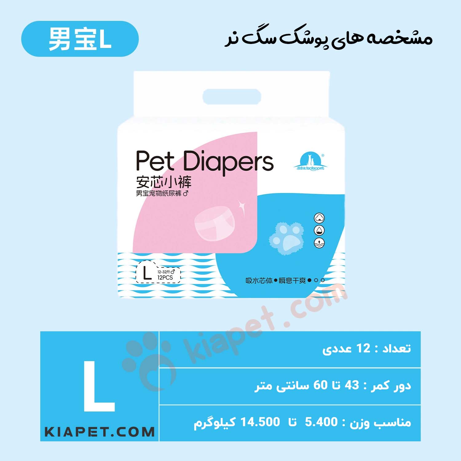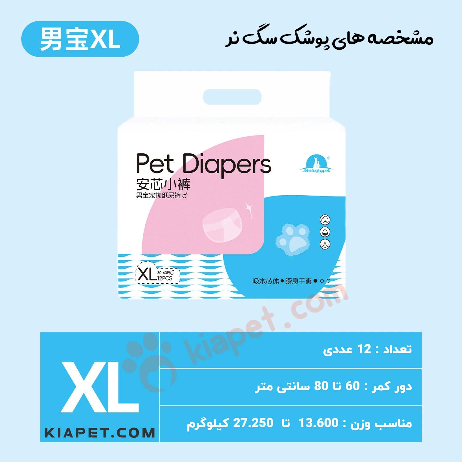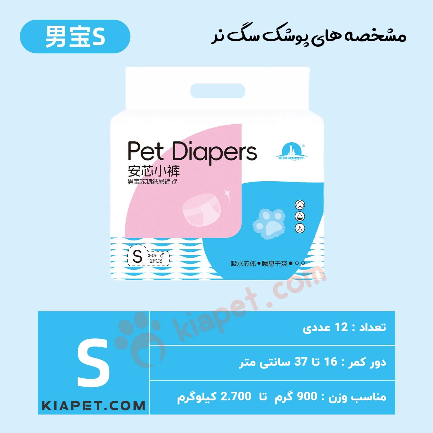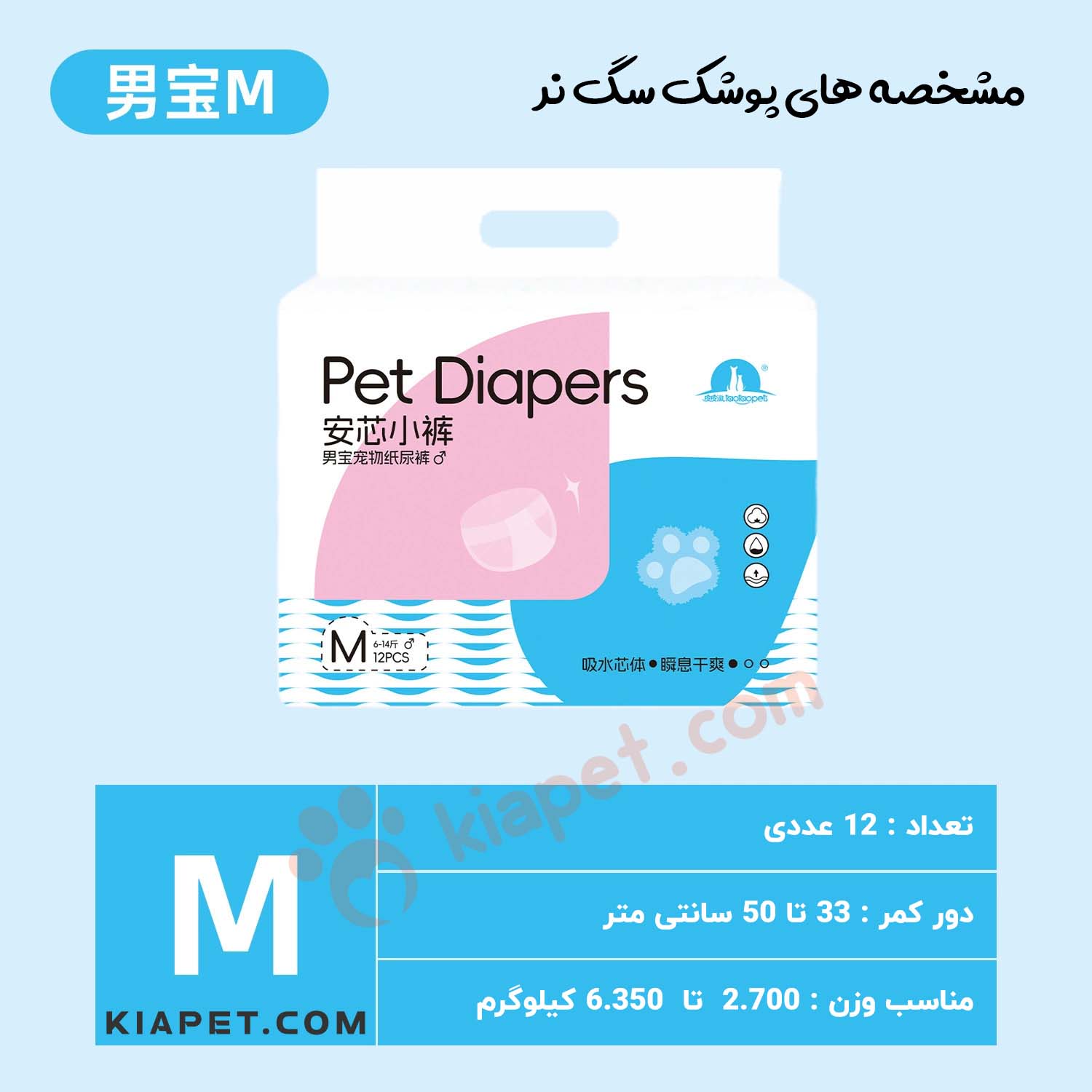 پوشک سگ نر ۱۲ عددی یک راهکار بهداشتی و کاربردی برای کنترل ادرار سگ ها در شرایط مختلف است. این محصول برای استفاده در زمان آموزش دستشویی، دوران نقاهت پس از جراحی، بی اختیاری ادرار، سفر یا حضور در محیط های بسته بسیار مناسب است. طراحی ارگونومیک پوشک باعث می شود به خوبی روی بدن سگ فیکس شود و در عین حال آزادی حرکت حیوان حفظ گردد. لایه داخلی جاذب و ضد نشت، از کثیف شدن محیط جلوگیری کرده و به حفظ نظافت خانه کمک می کند.