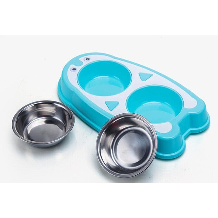 ظرف دوقلو سگ و گربه مدل پنگوئن با طراحی فانتزی و کاربردی، انتخابی ایده آل برای تغذیه روزانه حیوانات خانگی است. این محصول دارای دو کاسه استیل ضدزنگ بوده که امکان استفاده هم زمان برای آب و غذا یا غذای خشک و تر را فراهم می کند و نظم بیشتری به محل تغذیه پت می بخشد.