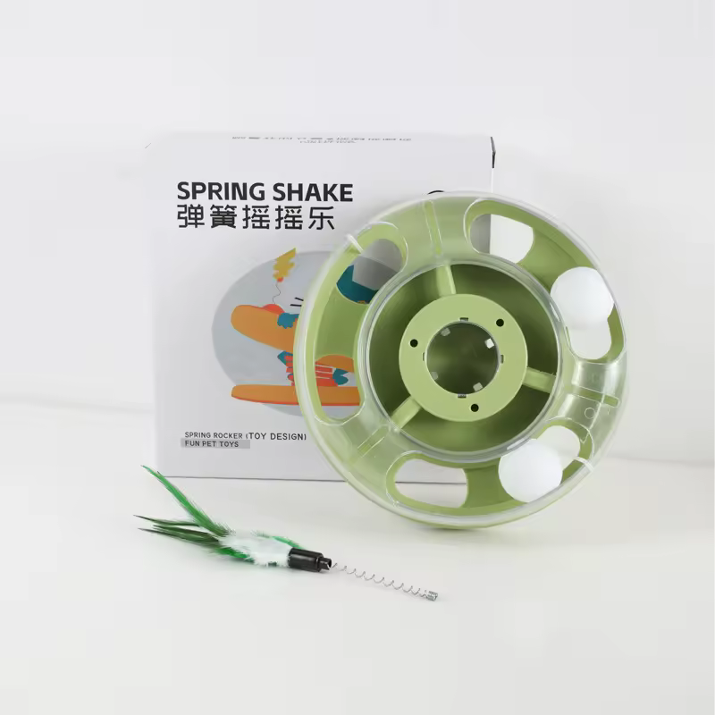 در طراحی این اسباب بازی گربه از ساختار دو لایه فنری استفاده شده که با کوچک ترین ضربه پنجه یا حرکت، شروع به لرزش و تکان خوردن می کند. پر متصل به فنر، حرکت نامنظم و جذابی ایجاد می کند که توجه گربه را به سرعت جلب کرده و او را به تعقیب، ضربه زدن و بازی مداوم تشویق می کند. این نوع بازی نه تنها باعث سرگرمی می شود، بلکه نقش مهمی در کاهش استرس، اضطراب و رفتارهای مخرب ناشی از بی حوصلگی دارد.