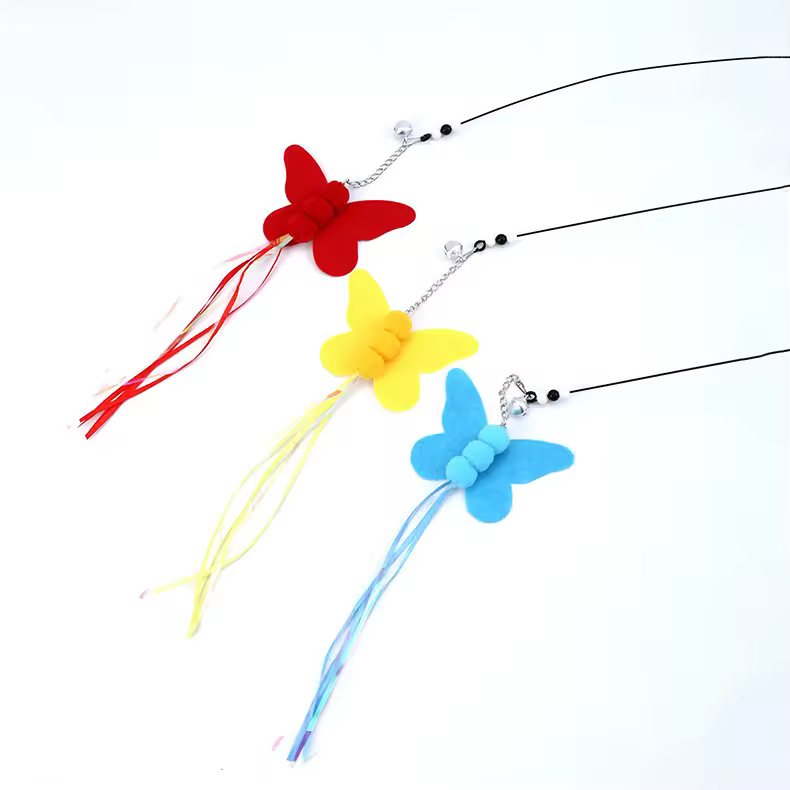 اسباب بازی گربه چوب زئوس مدل پروانه دم بلند همراه با زنگوله، مناسب تحریک غریزه شکار، افزایش تحرک و بازی تعاملی گربه ها.